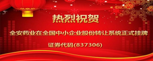 新疆全安藥業(yè)股份有限公司成立2008年,于2016年5月17日在全國(guó)中小企業(yè)股份轉(zhuǎn)讓系統(tǒng)成功掛牌。2018年4月于全國(guó)中小企業(yè)股份轉(zhuǎn)讓系統(tǒng)退市,全安藥業(yè)是國(guó)家高新技術(shù)企業(yè),生產(chǎn)基地位于新疆巴州庫(kù)爾勒市,全國(guó)營(yíng)銷中心 設(shè)于深圳。生產(chǎn)經(jīng)營(yíng)范圍包括片劑、顆粒劑、硬膠囊劑、原料藥等,主營(yíng)業(yè)務(wù)為消化系統(tǒng)、呼吸系統(tǒng)醫(yī)藥產(chǎn)品的研發(fā)、生產(chǎn)和銷售。