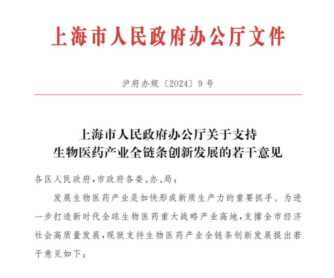 《意見》顯示,上海將進(jìn)一步打造新時(shí)代全球生物醫(yī)藥重大戰(zhàn)略產(chǎn)業(yè)高地,支撐全市經(jīng)濟(jì)社會(huì)高質(zhì)量發(fā)展,就支持生物醫(yī)藥產(chǎn)業(yè)全鏈條創(chuàng)新發(fā)展提出8大方面共37條的措施。