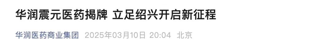 「華潤系」完成2025年醫(yī)藥商業(yè)領(lǐng)域首單收購,子公司華潤震元醫(yī)藥(浙江)正式揭牌。