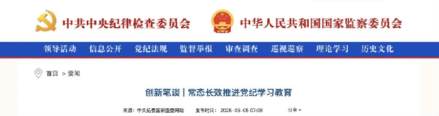 5月5日,中紀(jì)委官網(wǎng)發(fā)布的《創(chuàng)新筆談 | 常態(tài)長效推進黨紀(jì)學(xué)習(xí)教育》一文提出,突出重點對象,緊盯“關(guān)鍵少數(shù)”、年輕干部、關(guān)鍵崗位等重點群體,區(qū)分黨政機關(guān)、國有企業(yè)等不同領(lǐng)域,量身定制針對性教育內(nèi)容,分層分類精準(zhǔn)施教。