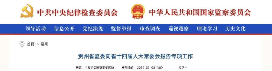 6月3日,中紀(jì)委轉(zhuǎn)發(fā)貴州省紀(jì)委監(jiān)委專項工作報告。