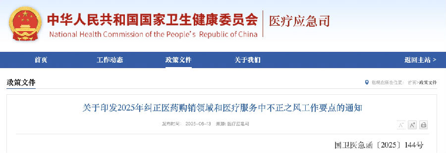 截圖自《2025年糾正醫(yī)藥購(gòu)銷領(lǐng)域和醫(yī)療服務(wù)中不正之風(fēng)工作要點(diǎn)》