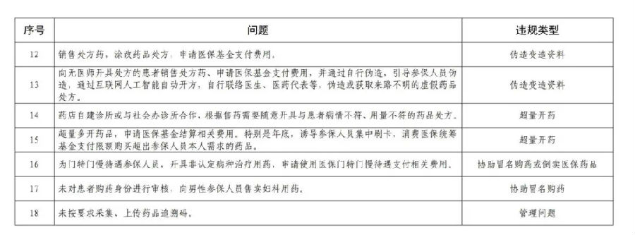 其中,定點(diǎn)零售藥店主要檢查7類問(wèn)題:(1)空刷套刷醫(yī)保憑證騙保問(wèn)題;(2)無(wú)處方或偽造變?cè)焯幏絾?wèn)題;(3)參與或協(xié)助倒賣“回流藥”問(wèn)題;(4)串換醫(yī)保藥品問(wèn)題;(5)誘導(dǎo)協(xié)助他人違規(guī)購(gòu)藥問(wèn)題;(6)聚焦特殊藥品使用中的“假病人”、藥店自行偽造或勾結(jié)醫(yī)藥代表開具“假處方”以及倒賣“回流藥”等問(wèn)題;(7)聚焦國(guó)家醫(yī)保局印發(fā)定點(diǎn)零售藥店問(wèn)題清單,重點(diǎn)核查相關(guān)問(wèn)題自查整改情況。