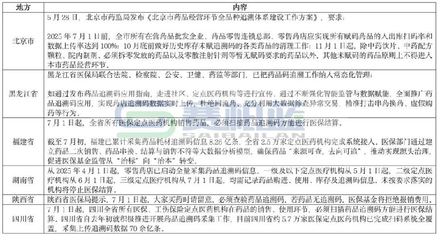 據賽柏藍不完全統(tǒng)計,自國家發(fā)布《關于加強藥品追溯碼在醫(yī)療保障和工傷保險領域采集應用的通知》后,該項工作在各地已積極有效落實: