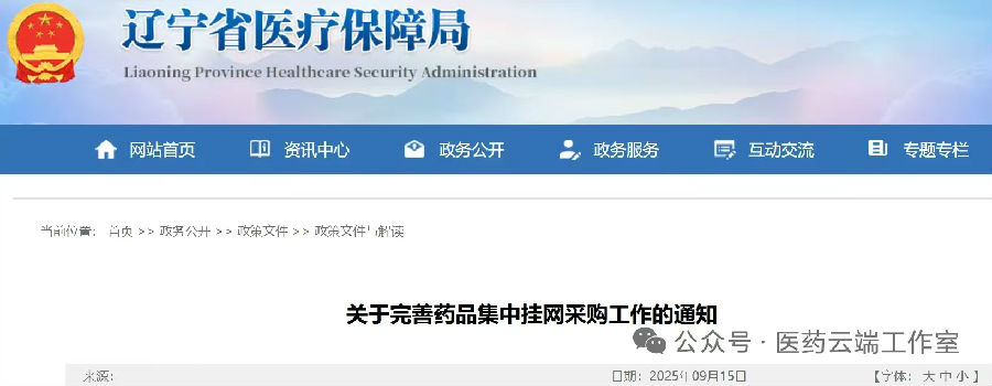 9月15日,遼寧省醫(yī)保局發(fā)布《關(guān)于完善藥品集中掛網(wǎng)采購工作的通知》(遼醫(yī)保規(guī)〔2025〕4號),自2025年10月1日起實(shí)施。原遼寧省有關(guān)藥品集中掛網(wǎng)采購規(guī)定與本通知不一致的,以本通知為準(zhǔn)。